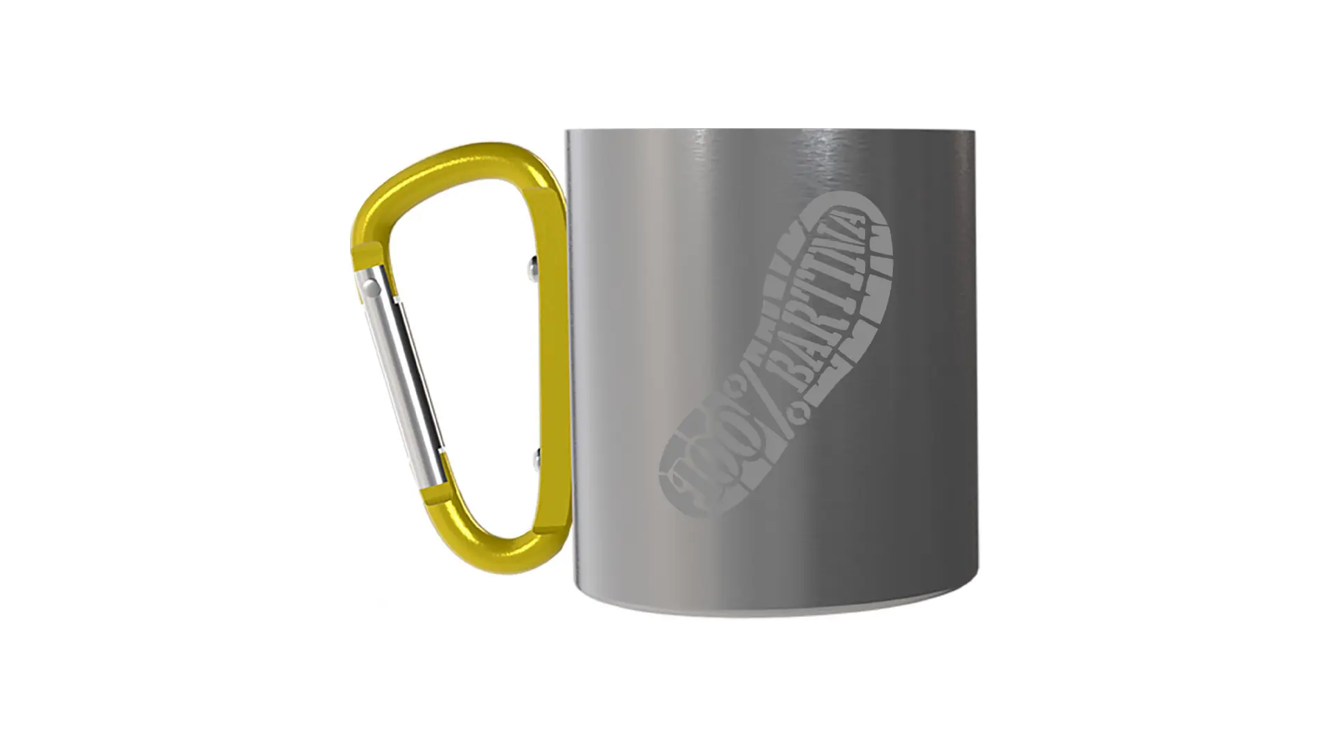 Gravírozott FÉM BÖGRE 2 dl, sárga karabíneres füllel, duplafalú, 100% Bartina logóval - 1900 Ft
