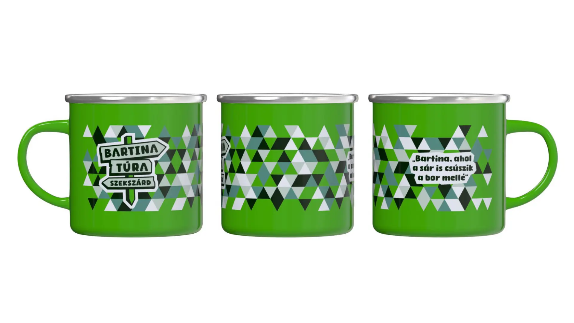 ZOMÁNCOZOTT FÉM bögre 3,5 dl, 100% Bartina grafikával (Zöld) - 2900 Ft